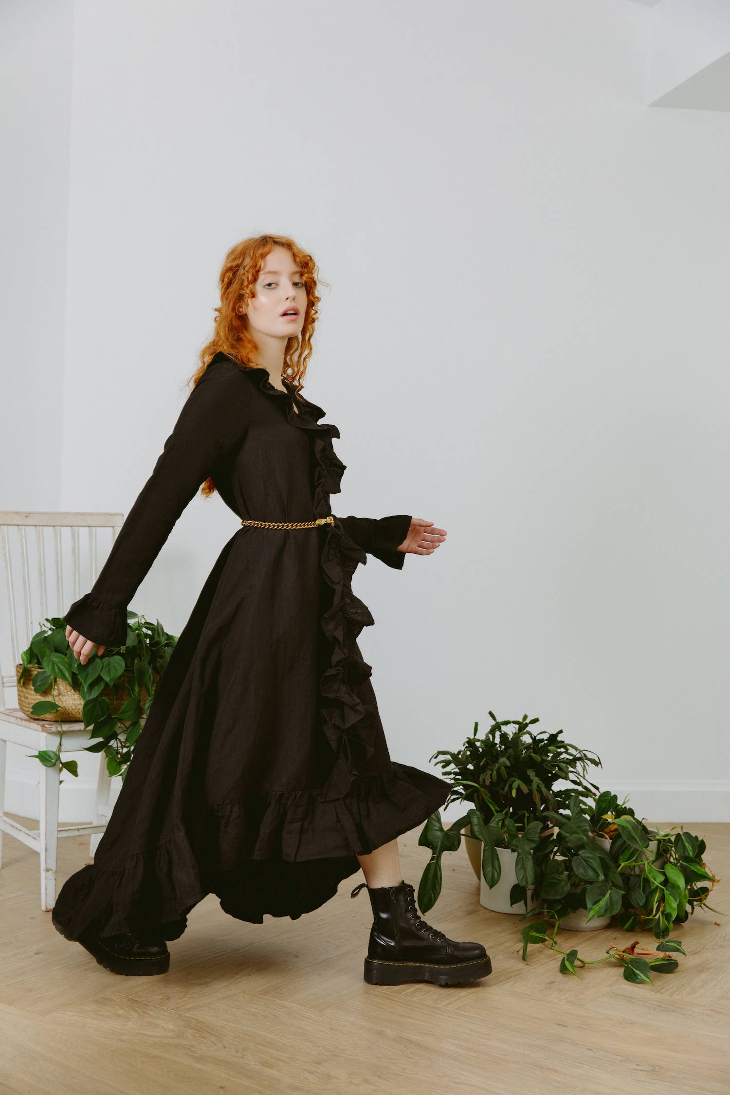 Black Maxi Dress Ruffled Linen Eco Friendly Women’s Azo Free
